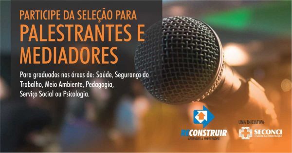 O Seconci-Rio está selecionando profissionais para atuar como palestrantes e mediadores nas ações educativas voltadas para Saúde, Segurança, Meio Ambiente, Cidadania e Comportamento realizadas nos canteiros de obras e em comunidades.