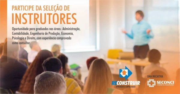 Seconci-Rio seleciona profissionais para atuar como instrutores no Programa Reconstruir